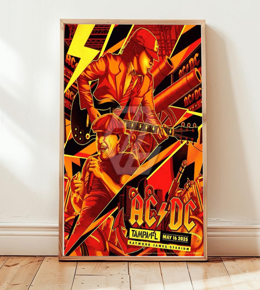 Celebrate AC/DC’s thunderous 2025 stop in Tampa with this exclusive concert poster canvas, capturing the explosive energy of their May 16 show at Raymond James Stadium. A bold, electrified design featuring the legendary lightning bolt, official event details, and gritty rock ’n’ roll vibes – perfect for fans who were there or collectors of classic band memorabilia.