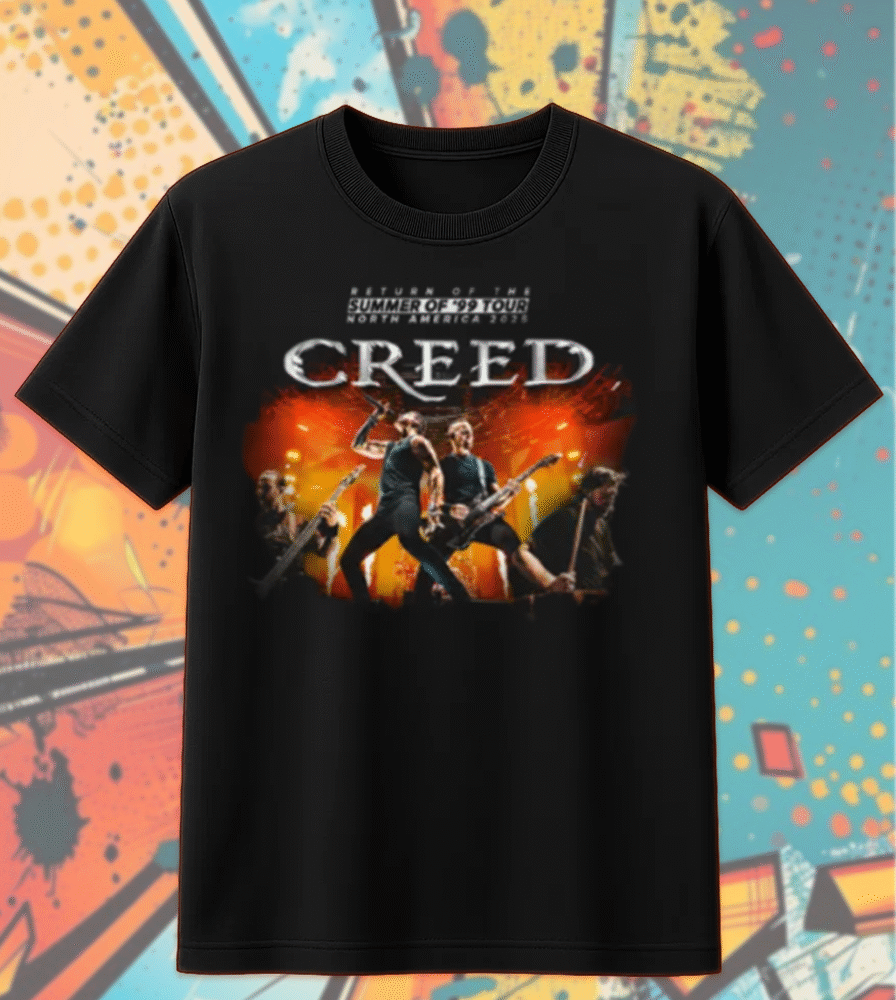 Celebrate the iconic sound of Creed with this official 2025 Summer of ’99 Tour merch collection. Featuring exclusive tour graphics and Creed’s signature logo, this collection includes everything from T-shirts to hoodies — the perfect way for fans to honor Creed’s return to the stage after decades. Relive the magic and energy of the band’s Summer of ’99 tour, now available in multiple styles.