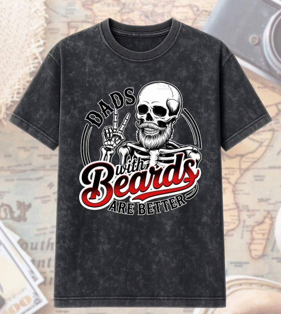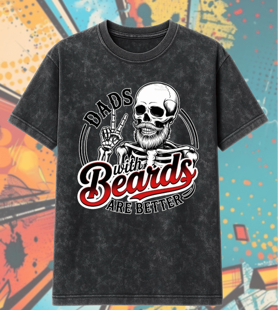 Celebrate Father’s Day with a bold vintage look! This limited-edition “Dads With Beards Are Better” graphic is printed on unique Acid Wash T-shirts and cozy Hoodies. Featuring a skeleton dad with a beard and sunglasses, it’s perfect for bearded dads who live life with humor and swagger.