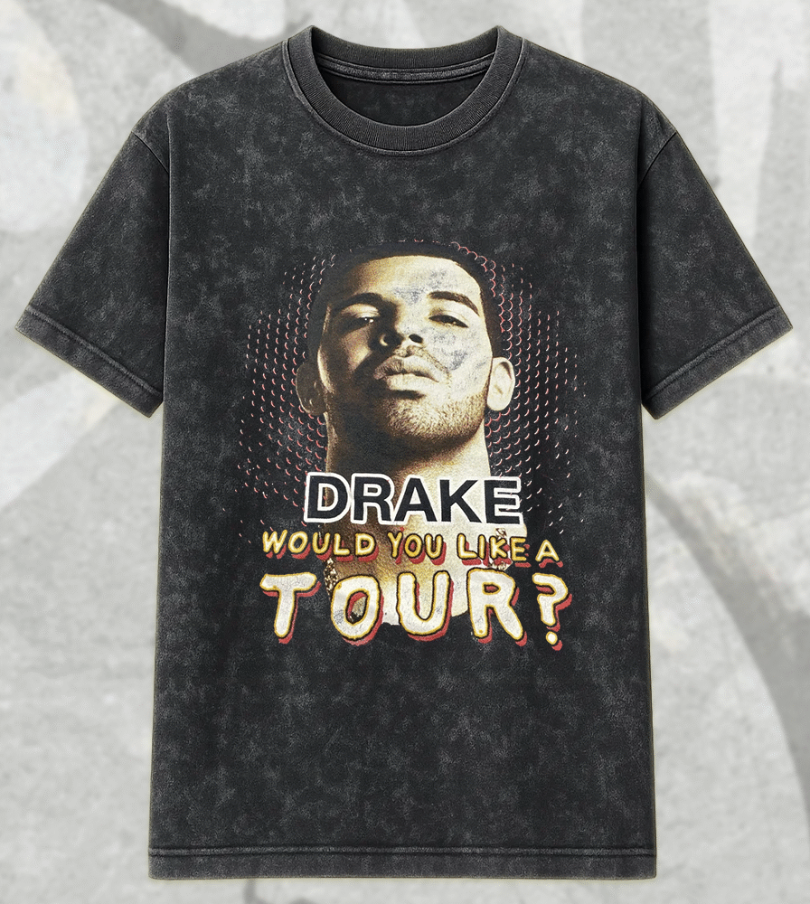 Step back into the unforgettable energy of Drake’s Would You Like a Tour 2013 with this exclusive acid wash T-shirt and hoodie collection, featuring the legendary Miguel. This vintage acid wash design gives the ultimate nod to the historic tour and the epic collaboration between Drake and Miguel, both musically and stylistically. Whether you’re a longtime fan or just discovering their powerful connection, this merch is a must-have for all Drake and Miguel fans.