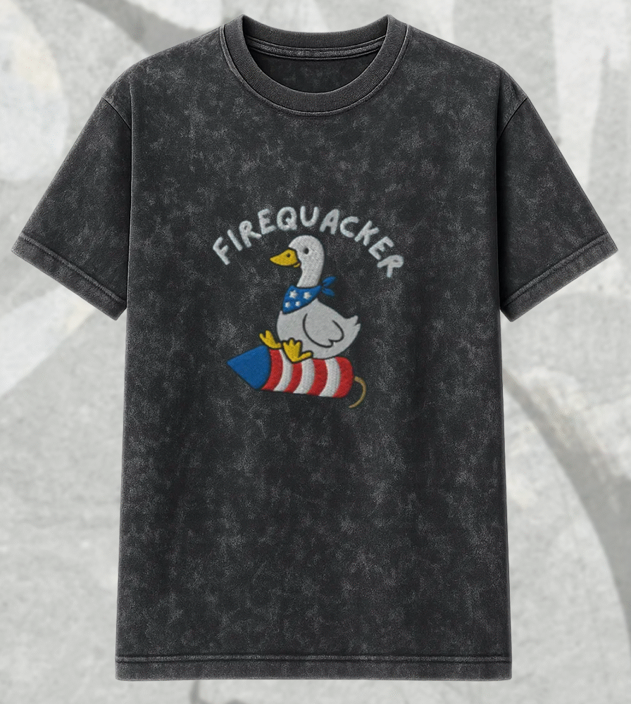 Crafted for comfort and individuality, each acid-washed piece has its own unique texture — just like every silly goose in your life. Whether you’re rocking this to a fireworks show, family BBQ, or just repping America with sass, this is your new go-to.