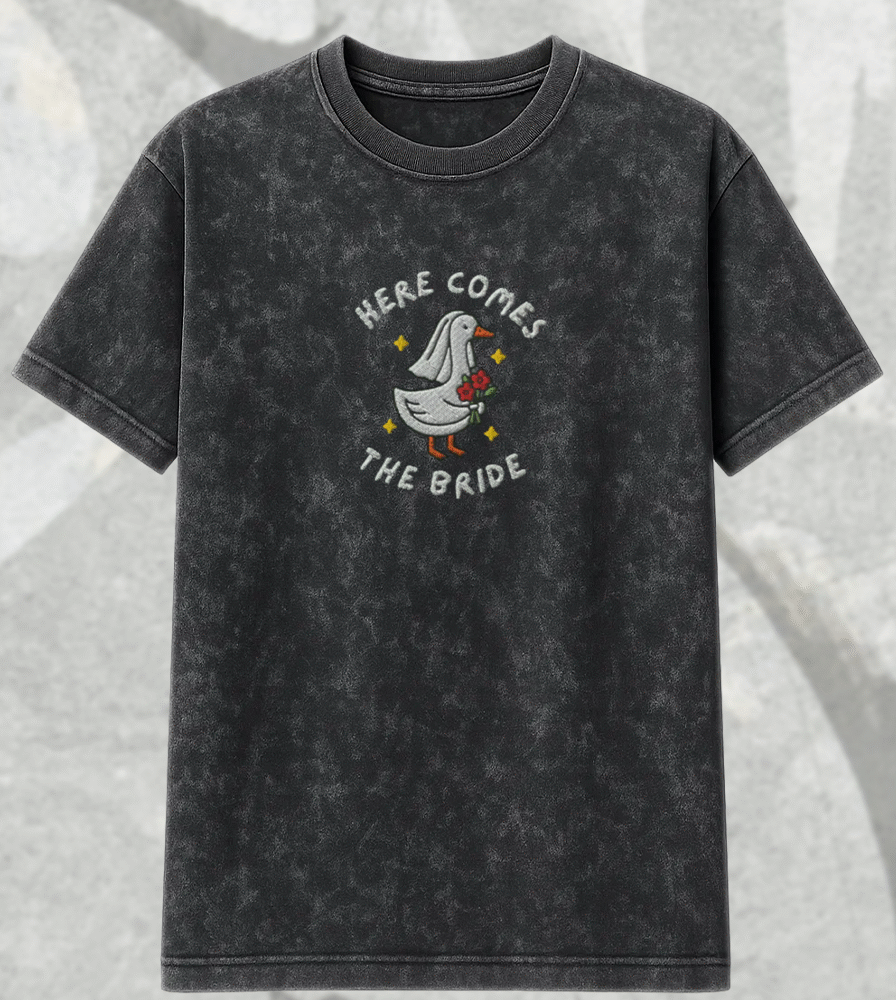 This isn’t your typical bridal shirt. The Embroidered Silly Goose Bride Shirt adds a hilarious and adorable twist to your bachelorette, bridal shower, or pre-wedding prep days. Featuring a delicately embroidered white goose in a veil with “Bride” script on the chest, it’s the perfect gift for the bride who doesn’t take herself too seriously and wants to stand out in comfort and style.