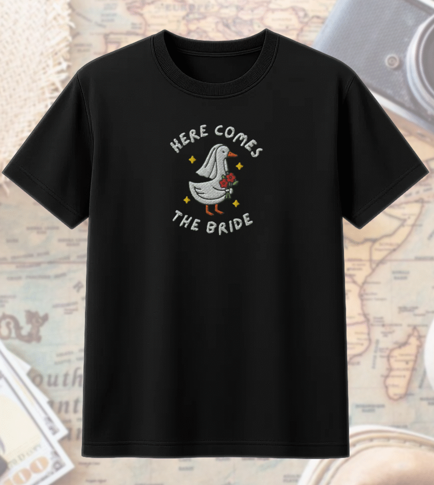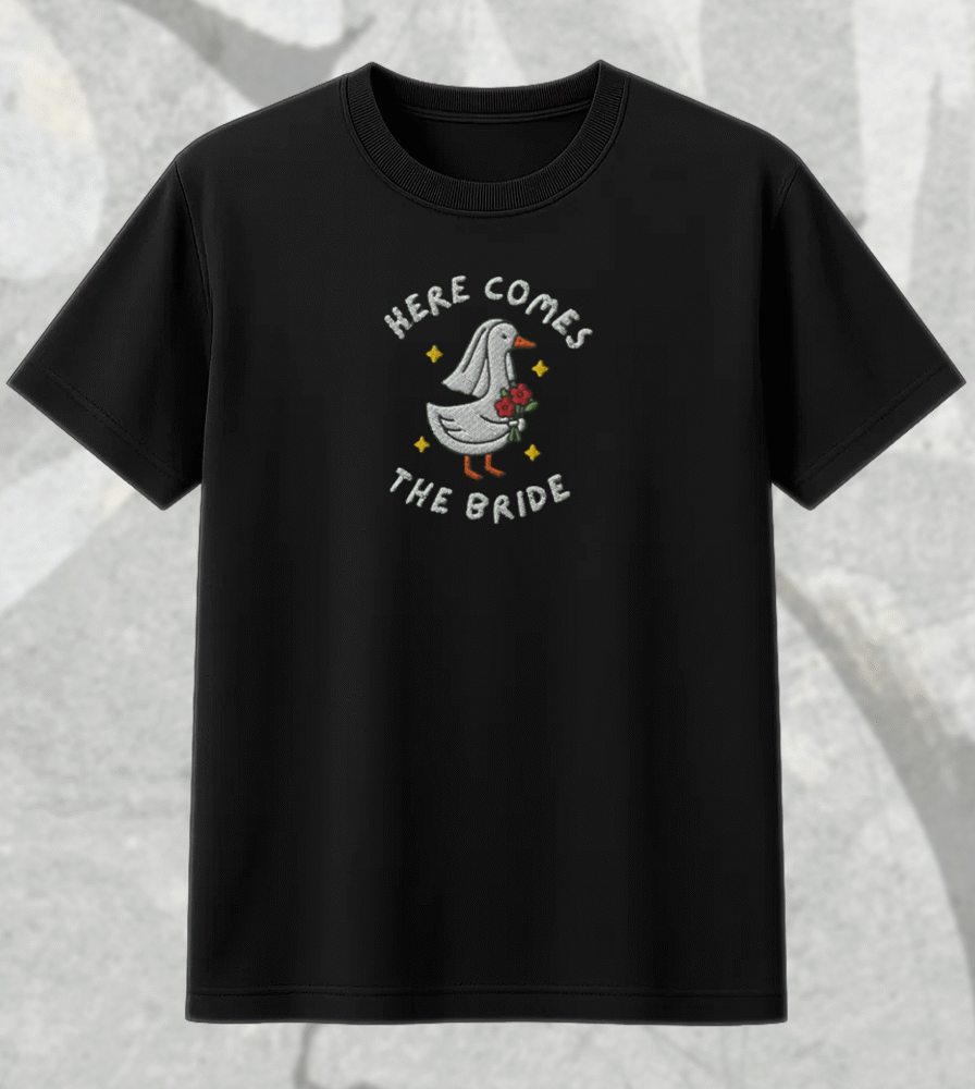 Say “yes” to the dress—and to the goose! Our Embroidered Silly Goose Bride Shirt is the perfect bachelorette party tee or wedding weekend statement piece. Whether you’re celebrating at the bridal shower, prepping for the big day, or just honking through life with your flock, this funny and cute embroidered design is made for the bride who doesn’t take herself too seriously.