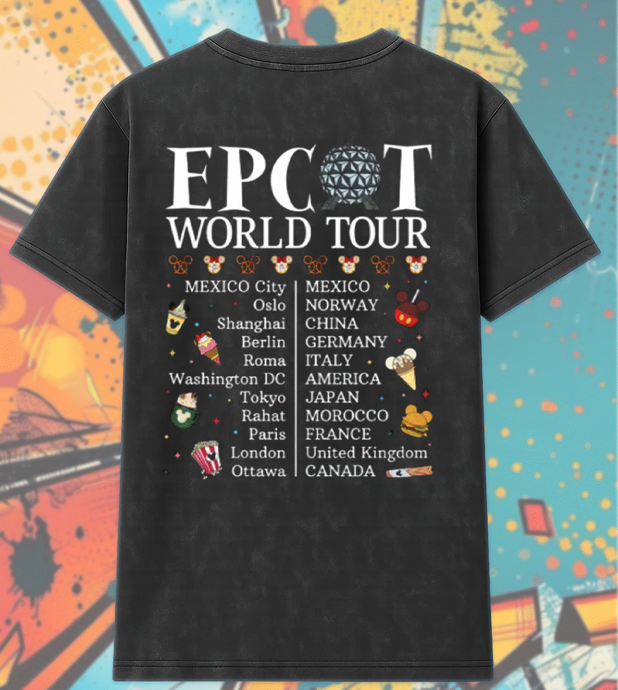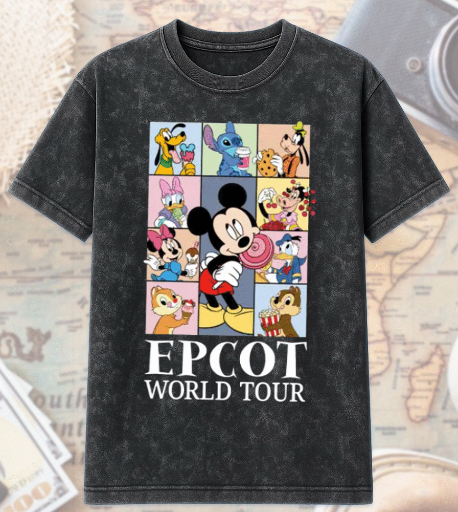 Celebrate the adventure of Epcot’s World Tour with this exclusive acid wash T-shirt and hoodie collection, featuring the timeless Mickey and Friends design. The perfect keepsake for any family trip or Disney enthusiast, this shirt lets you showcase your love for Disney’s most iconic characters, all wrapped in a fun, vintage acid wash look.