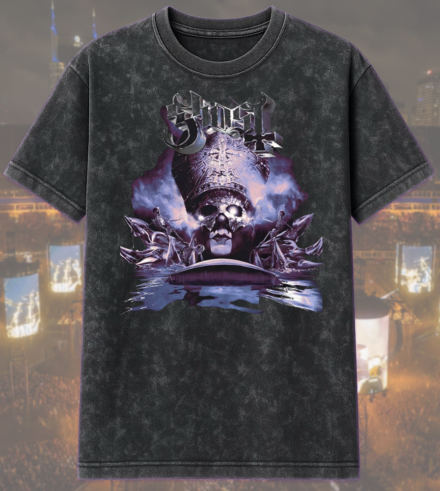 Celebrate Ghost’s haunting Skeletour 2025 stop in Sandviken, Sweden with this exclusive acid wash apparel drop, featuring the official concert artwork from May 23 at Göransson Arena. This rare design combines retro-washed fabric with gothic visuals for a timeless piece that honors Ghost’s theatrical mastery.