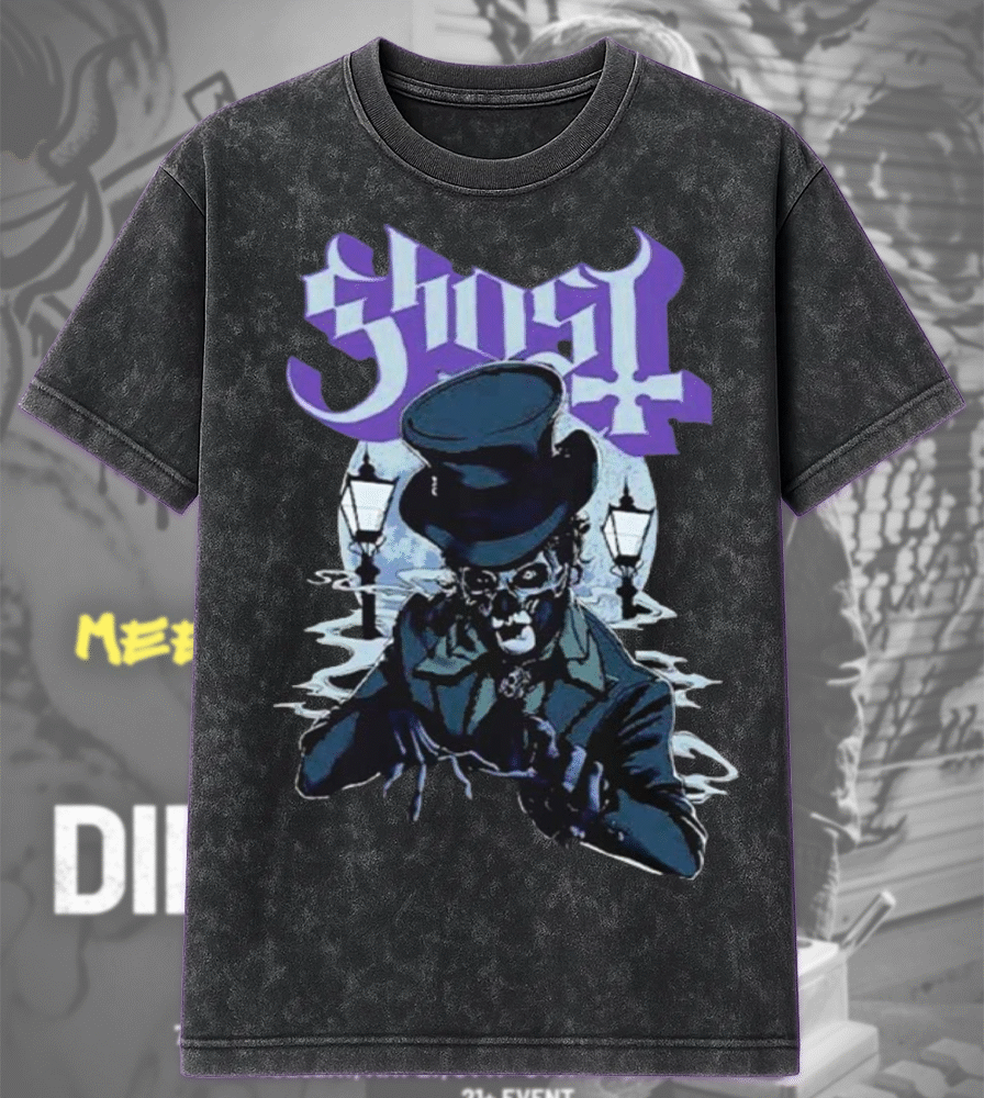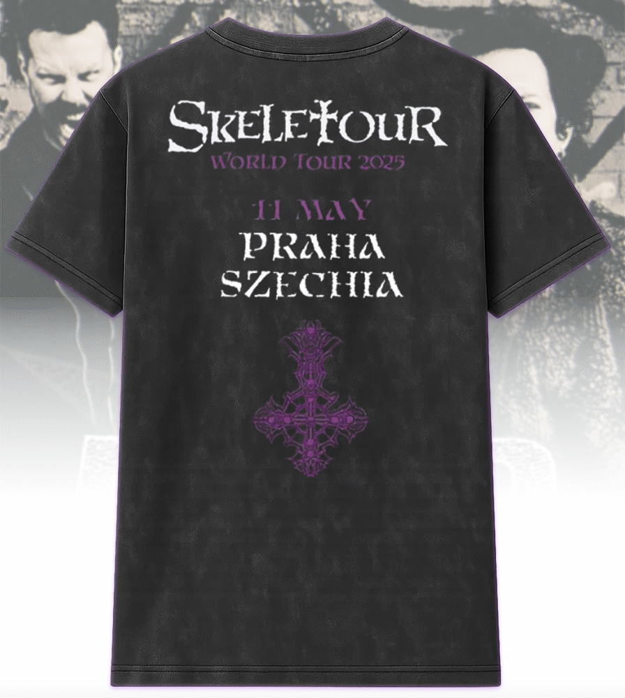 Celebrate Ghost’s chilling Skeletour World Tour stop in Praha, Czechia on May 11, 2025 with this rare acid wash edition apparel — available as a double-sided T-shirt or hoodie. Born from the exclusive pop-up shop event, this limited edition drop brings together gothic flair and timeless rock aesthetics.