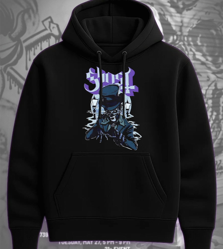 Featuring a dramatic full-back tour artwork and signature Skeletour graphics on the front chest, this drop fuses dark artistry with gothic stage energy. With two-sided prints available across tees, hoodies, tanks, and long sleeves, it’s your wearable relic from Ghost’s 2025 European ritual.