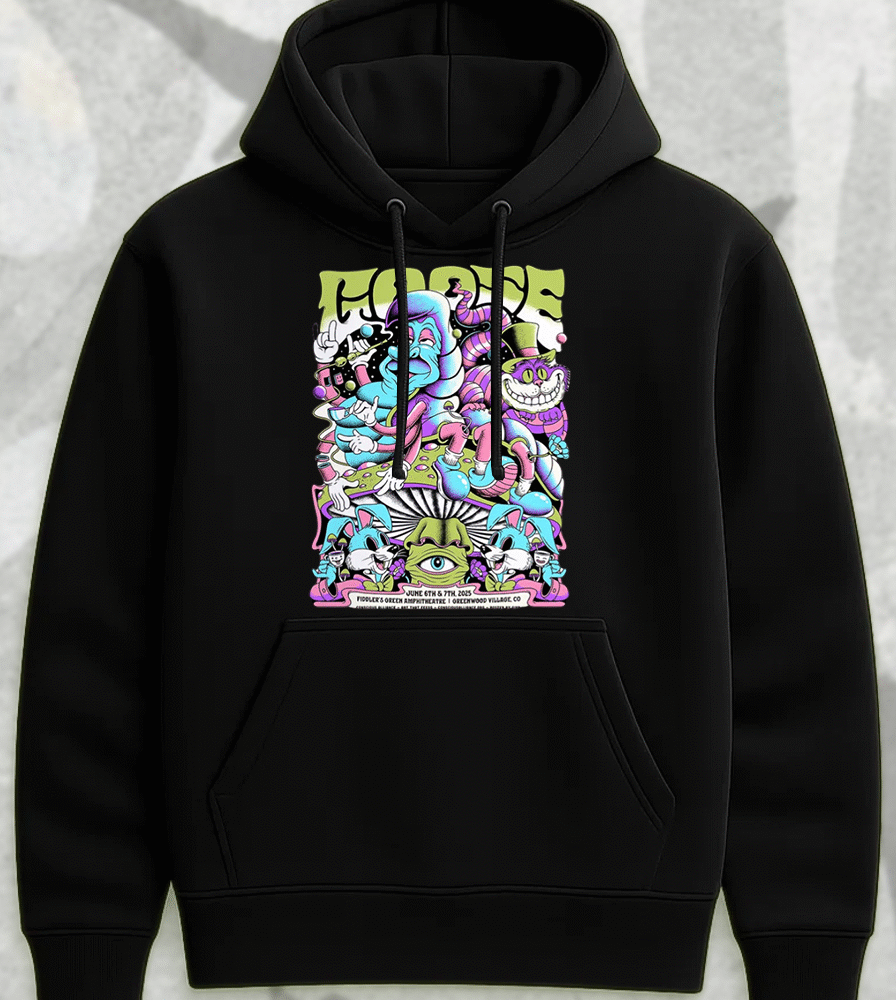 Bring the jam vibes to your wardrobe with this bold and trippy Goose 2025 tour shirt or hoodie — featuring the official-style concert poster from the band’s two-night run at Fiddler’s Green Amphitheatre in Greenwood Village, Colorado on June 6th & 7th, 2025.