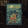 In the foreground, a bed of blooming daisies and forest wildflowers border the sparkling water, while Hozier’s name appears in bold, dripping typography—like it’s etched from the cascading water itself. With brilliant shades of teal, magenta, and golden dusk, this poster radiates the soul-stirring serenity of the performance.
