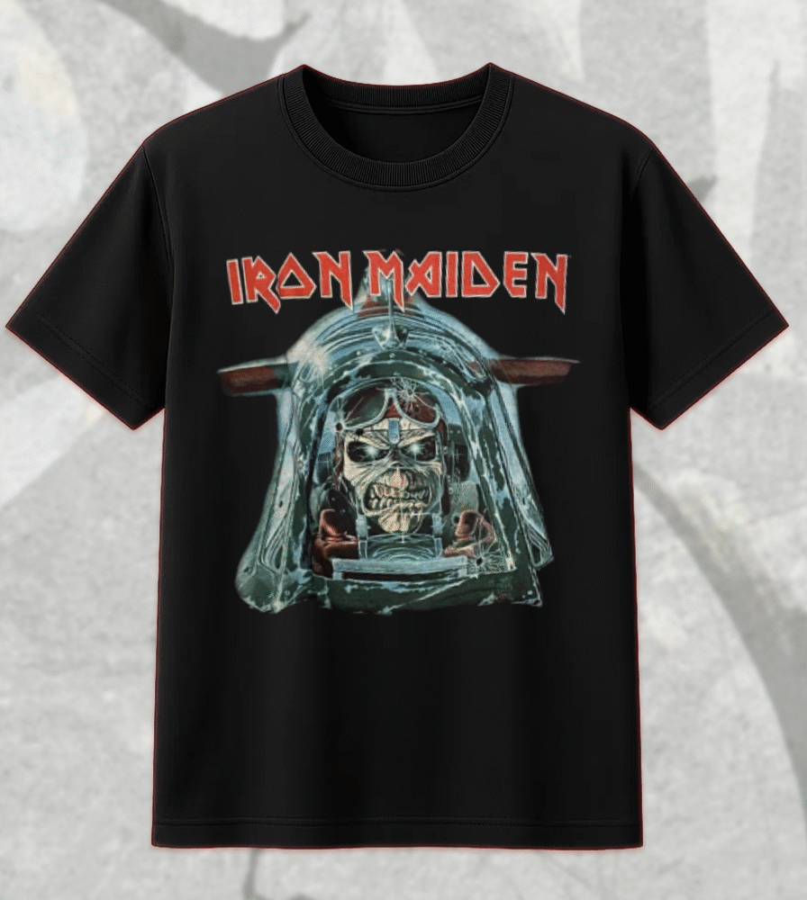 🛩️ Featuring bold front graphics of Eddie the Head piloting a WWII Spitfire and classic Iron Maiden tour text, this design pays homage to the “Aces High” track — a fan-favorite anthem about air combat and bravery. Whether you’re a lifelong metalhead or a collector of rare tour art, this drop is your chance to wear the legend.