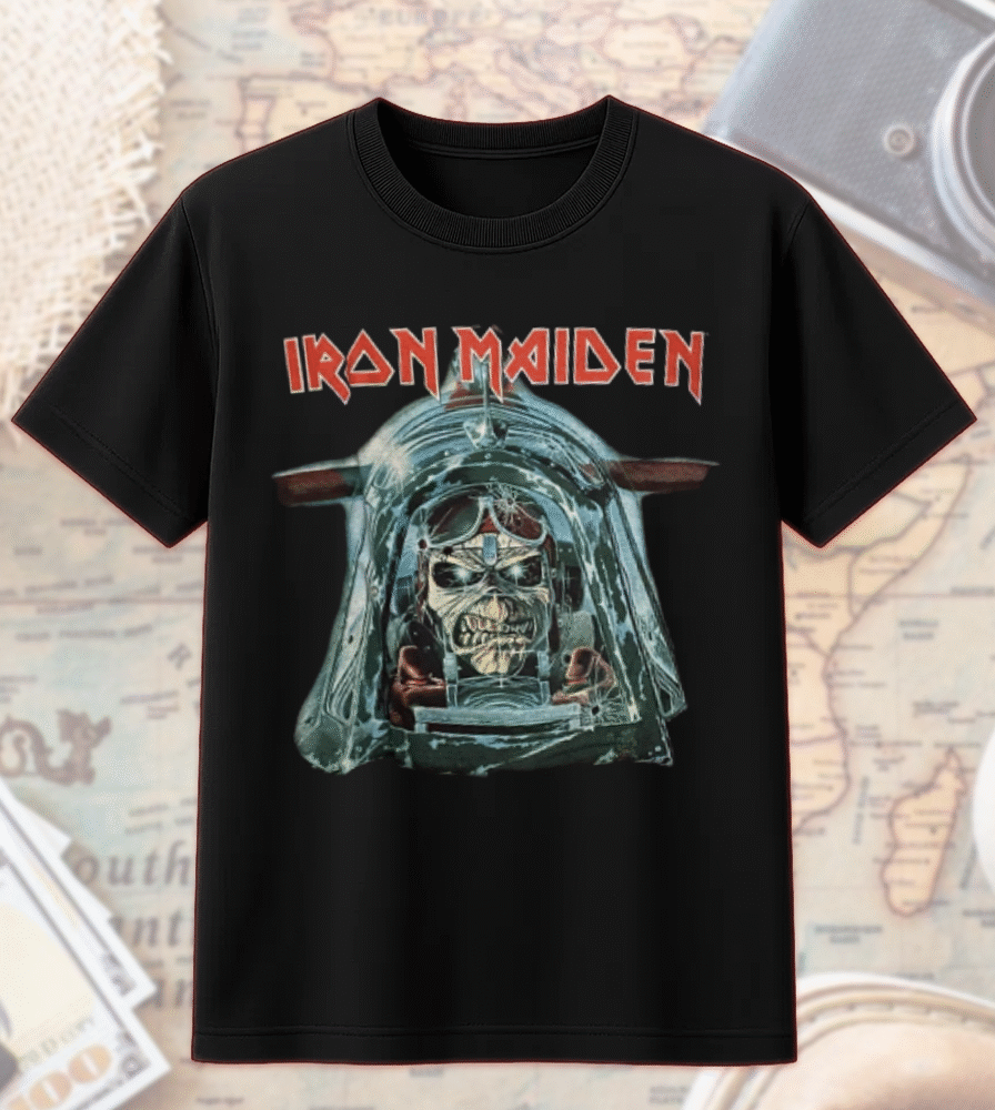 Celebrate the legacy of heavy metal legends Iron Maiden with this exclusive vintage-style apparel drop inspired by the rare 2003 “Aces High” World Tour shirt (Men’s XL, Near Mint condition). Now available in a range of styles including T-shirt, hoodie, sweatshirt, long sleeve, and tank top, this reimagined tour piece captures the adrenaline and sonic power of Iron Maiden’s iconic performances.