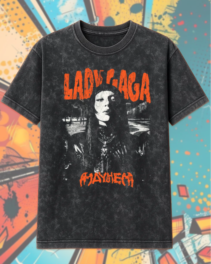 Get ready to celebrate Lady Gaga’s Mayhem Ball Tour 2025 with this exclusive acid wash T-shirt and hoodie set. With the iconic Lady Gaga graphic and a distressed, vintage acid-washed finish, this collection is a must-have for true fans who want to wear the magic of her performance on stage and beyond.