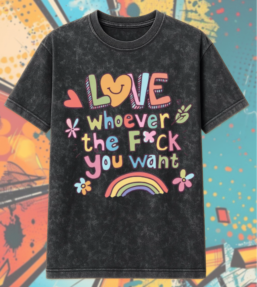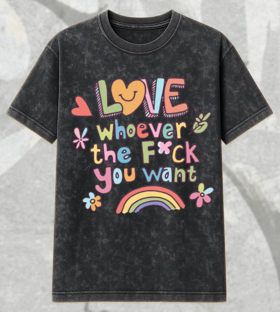 Celebrate authenticity and freedom with the “Love Whoever You Want” acid wash collection — available in ultra-soft acid-wash T-shirts and cozy hoodies. This subtle-yet-bold design lets your pride speak volumes, whether you’re part of the LGBTQIA+ community or a proud ally. A perfect piece for Pride Month, rallies, or everyday empowerment.