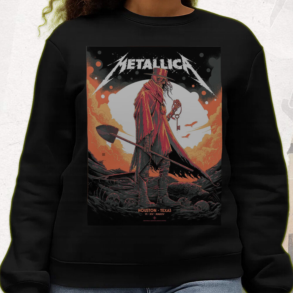 🔥 Celebrate Metallica’s explosive June 14, 2025 performance in Houston with this limited edition M72 Tour sweatshirt, featuring the chilling Grim Reaper poster-style artwork from the iconic NRG Stadium concert.