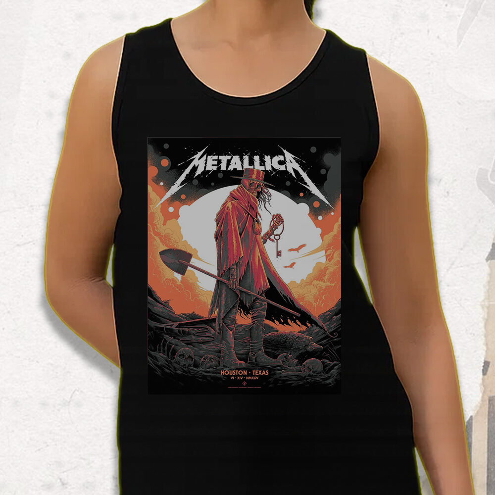 🔥 Celebrate Metallica’s M72 World Tour stop in Houston with this exclusive tank top featuring the haunting Grim Reaper Skeleton design from the June 14, 2025 concert at NRG Stadium. Crafted for die-hard fans and collectors alike, this tank honors one of the most electrifying stops of the no-repeat weekend tour.