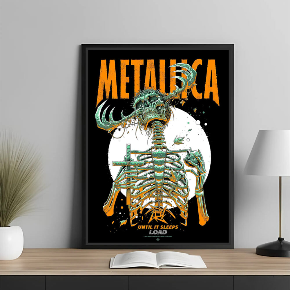 💀 Channel the raw emotion and dark beauty of Metallica’s Load era with this official “Until It Sleeps” poster, spotlighting the electrifying Skeleton Cross design. Reimagined for the 2025 Tour, this exclusive wall art fuses haunting symbolism with heavy metal legacy.