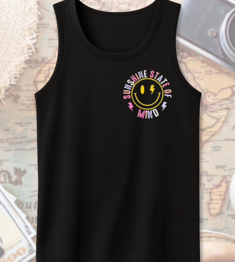 Get into the Sunshine State of Mind with this vibrant beach life design featuring neon colors and trendy summer vibes. This T-shirt, hoodie, sweatshirt, long sleeve, and tank top collection celebrates the carefree beauty of sunshine, beaches, rivers, and summer days. Whether you’re soaking up the sun or enjoying the lake, this design will transport you to the perfect summer state.