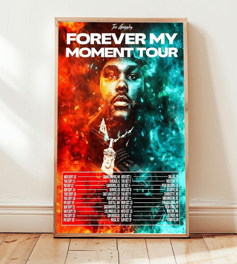Commemorate Tee Grizzley’s first-ever headlining North American tour with this exclusive Forever My Moment Tour 2025 poster canvas. Featuring the complete list of cities and dates from his breakout tour, this is a must-have for day-one fans and hip-hop collectors alike.