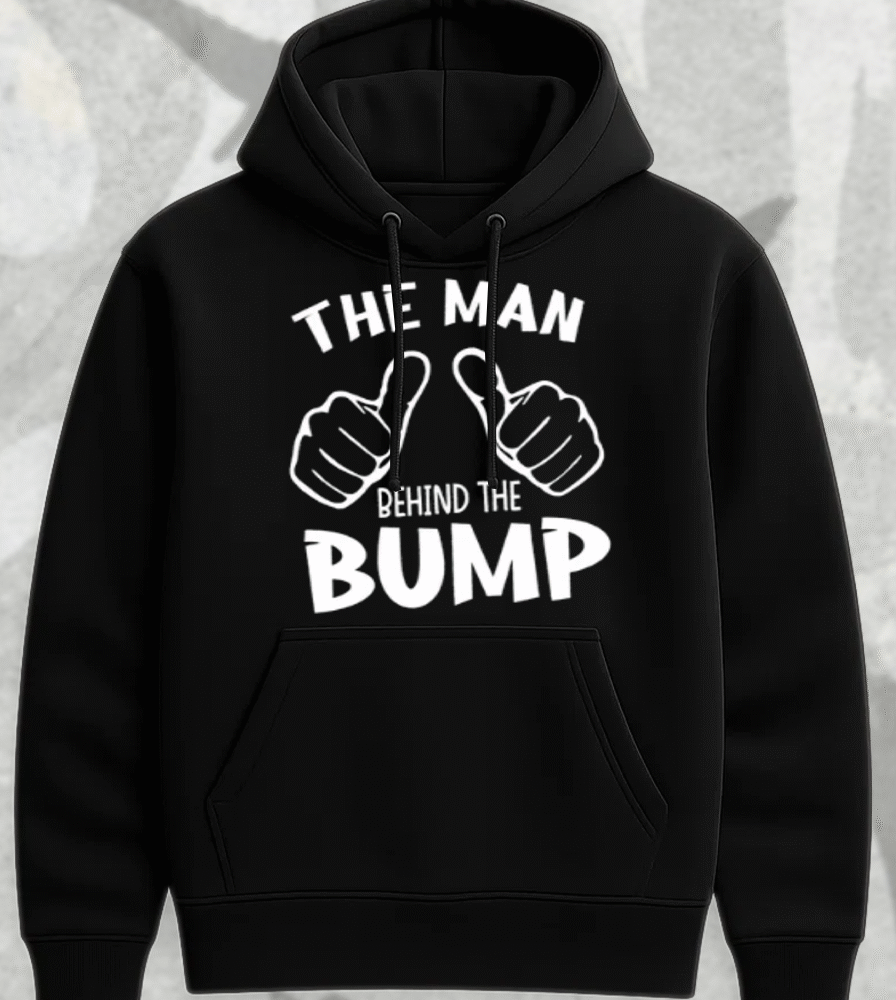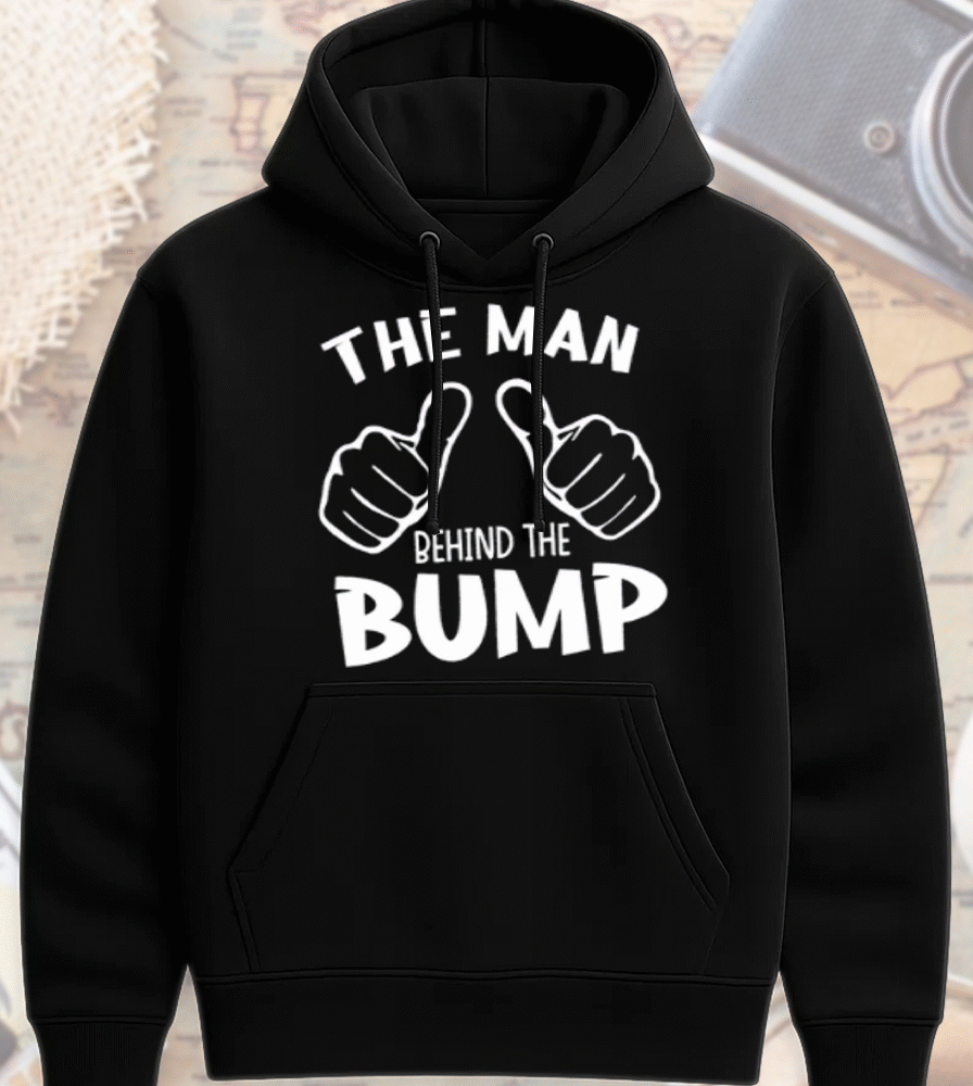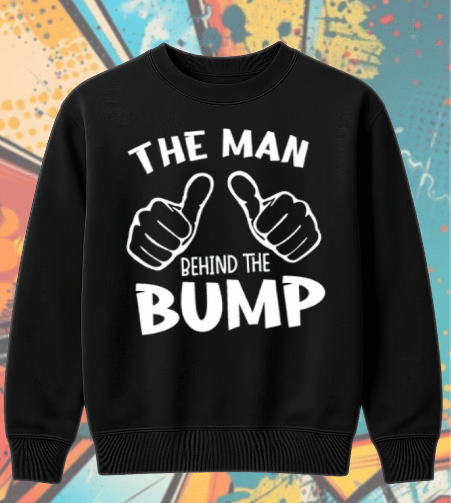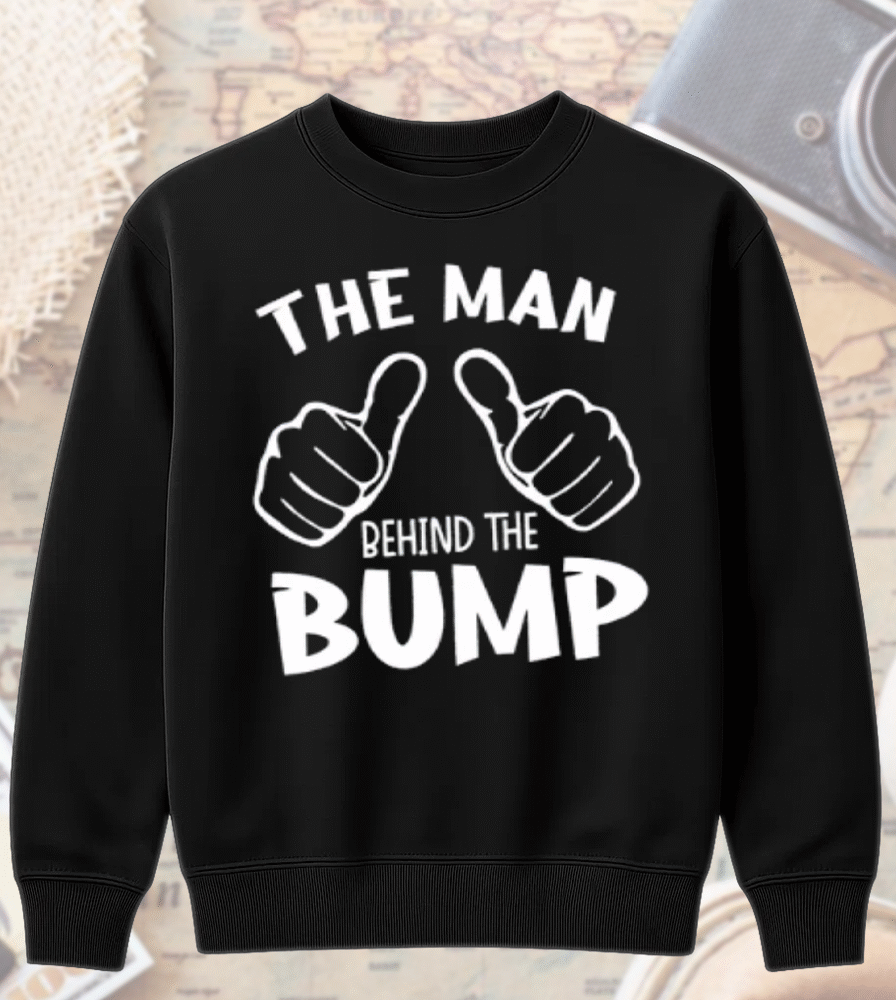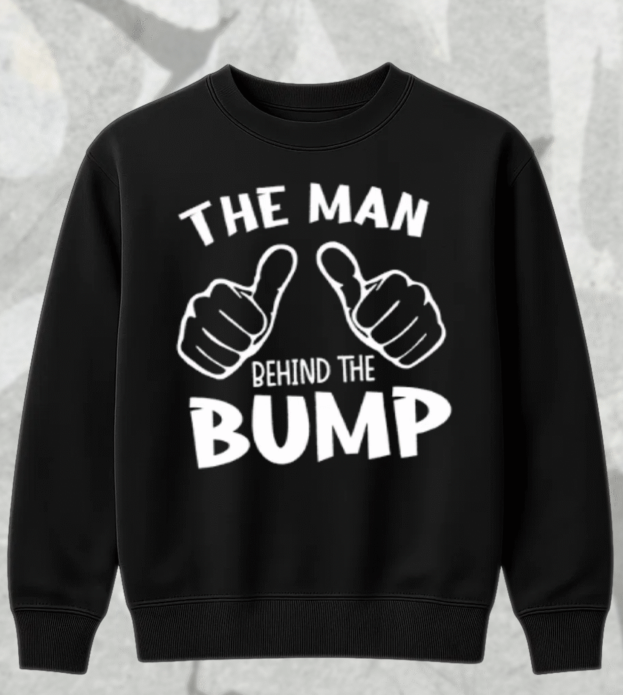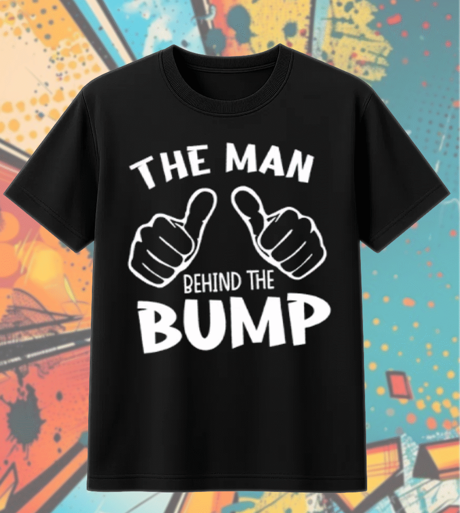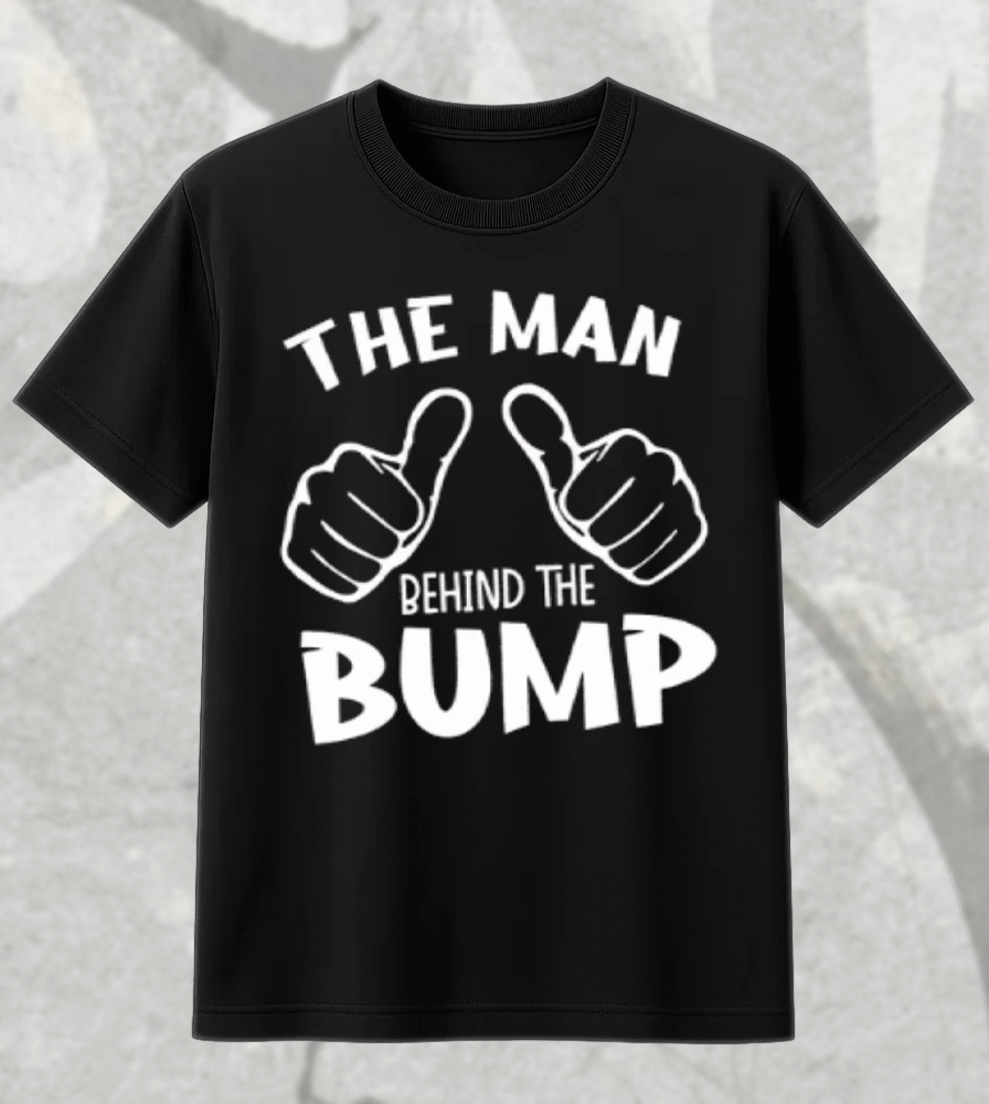 Whether it’s your first baby or your fifth, celebrate your role in style with this hilarious and heartwarming design. “The Man Behind The Bump” is the ultimate dad-to-be tee — perfect for baby showers, photoshoots, or simply wearing with pride!