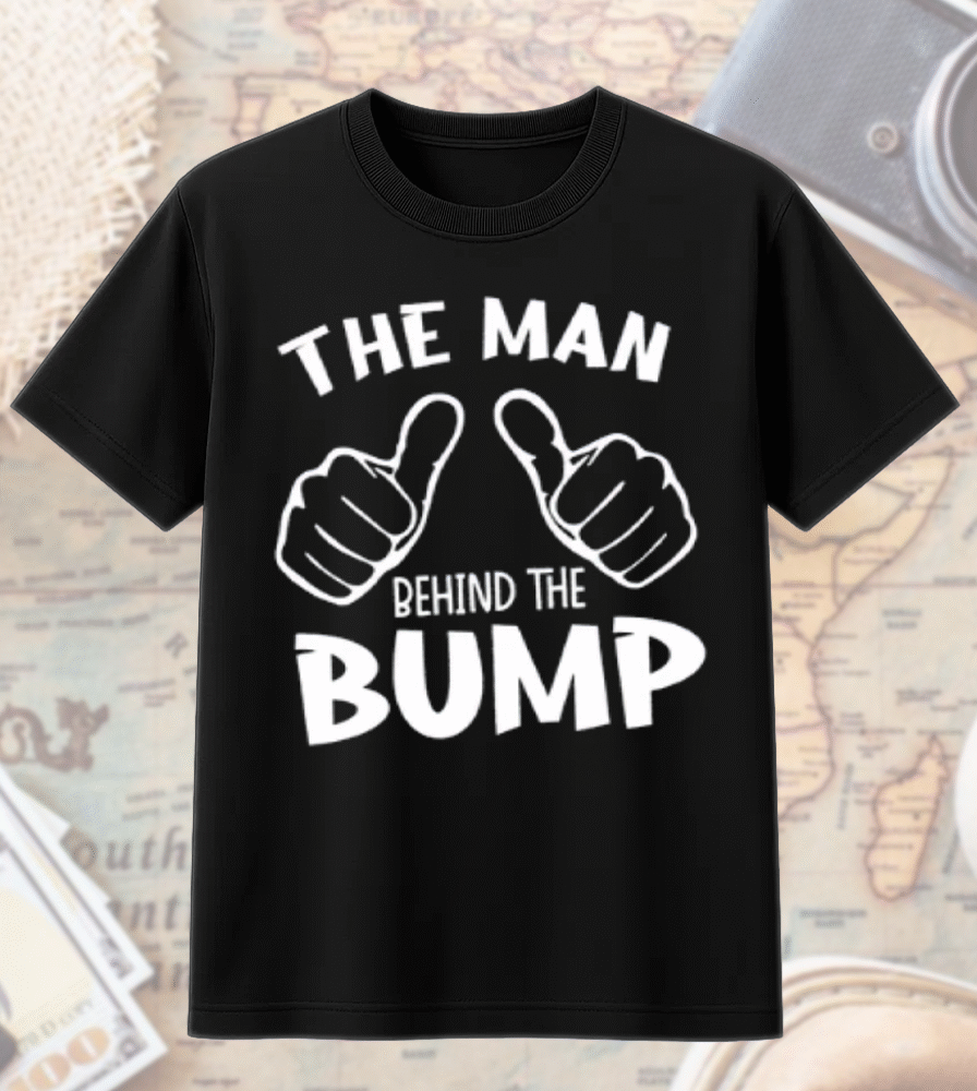 👶 The Man Behind the Bump – Funny Pregnancy Reveal Tee for Proud Dads