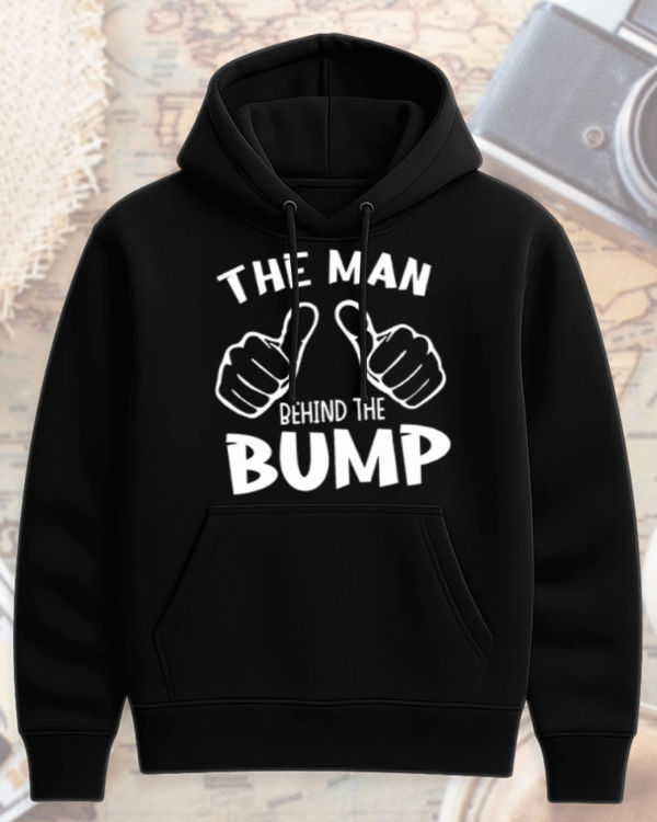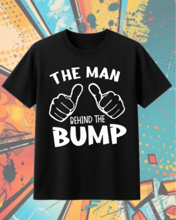 Whether it’s your first baby or your fifth, celebrate your role in style with this hilarious and heartwarming design. “The Man Behind The Bump” is the ultimate dad-to-be tee — perfect for baby showers, photoshoots, or simply wearing with pride!