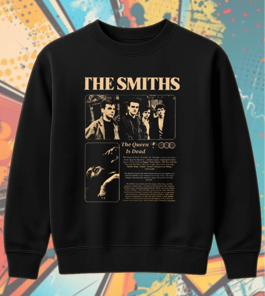 Celebrate the timeless legacy of The Smiths with this vintage-inspired graphic tee – a must-have for fans of the iconic British band. Featuring bold 90s-style artwork and inspired by classic Smiths albums, this design is printed on high-quality Comfort Color T-shirts, soft hoodies, cozy sweatshirts, tank tops, and long sleeves.