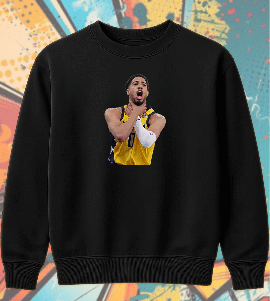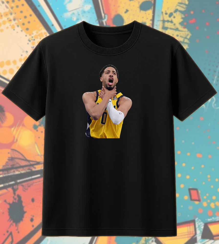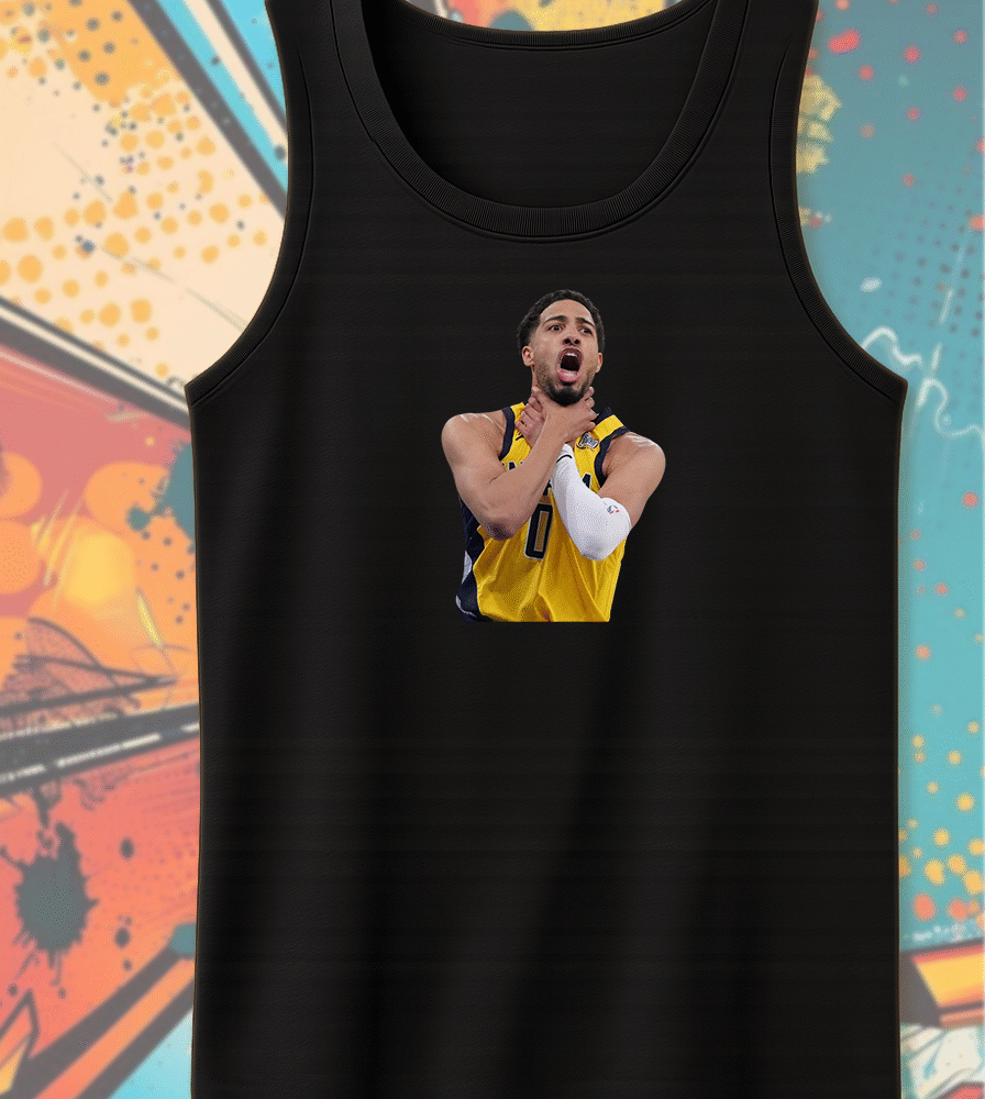 Show off your playoff pride with this bold and unforgettable Tyrese Haliburton “Choke” celebration design from the 2025 NBA Playoffs. Capturing one of the most iconic moments of the postseason, this fan-favorite artwork is perfect for basketball lovers and meme collectors alike.