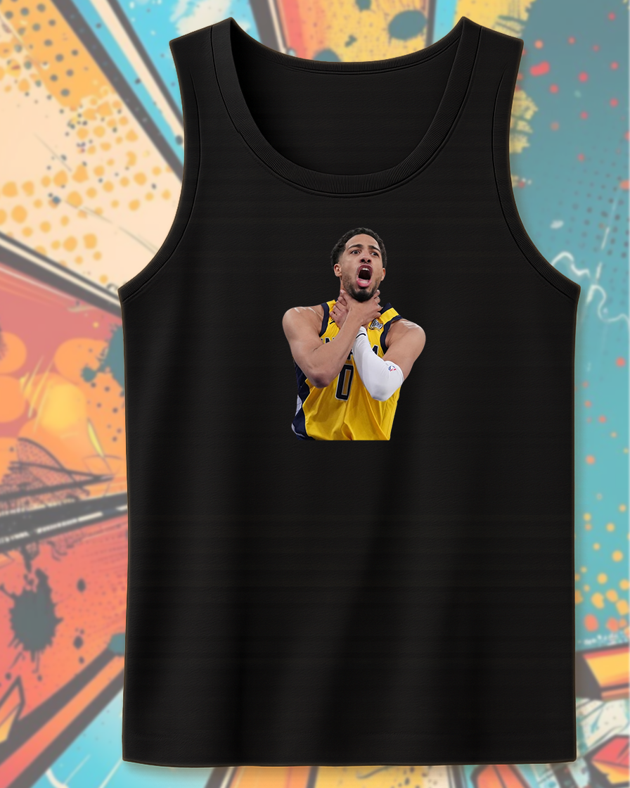 Show off your playoff pride with this bold and unforgettable Tyrese Haliburton “Choke” celebration design from the 2025 NBA Playoffs. Capturing one of the most iconic moments of the postseason, this fan-favorite artwork is perfect for basketball lovers and meme collectors alike.