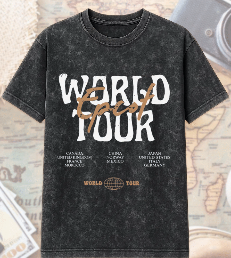 Experience the ultimate Disney adventure with this Vintage Disney Epcot World Tour Acid Wash collection, featuring the beloved Drink Around The World design. Whether you’re strolling through Epcot’s World Showcase, reminiscing about your Disney trip, or simply showing off your Disney love, this acid-washed tee and hoodie is a must-have for any Disney fan.