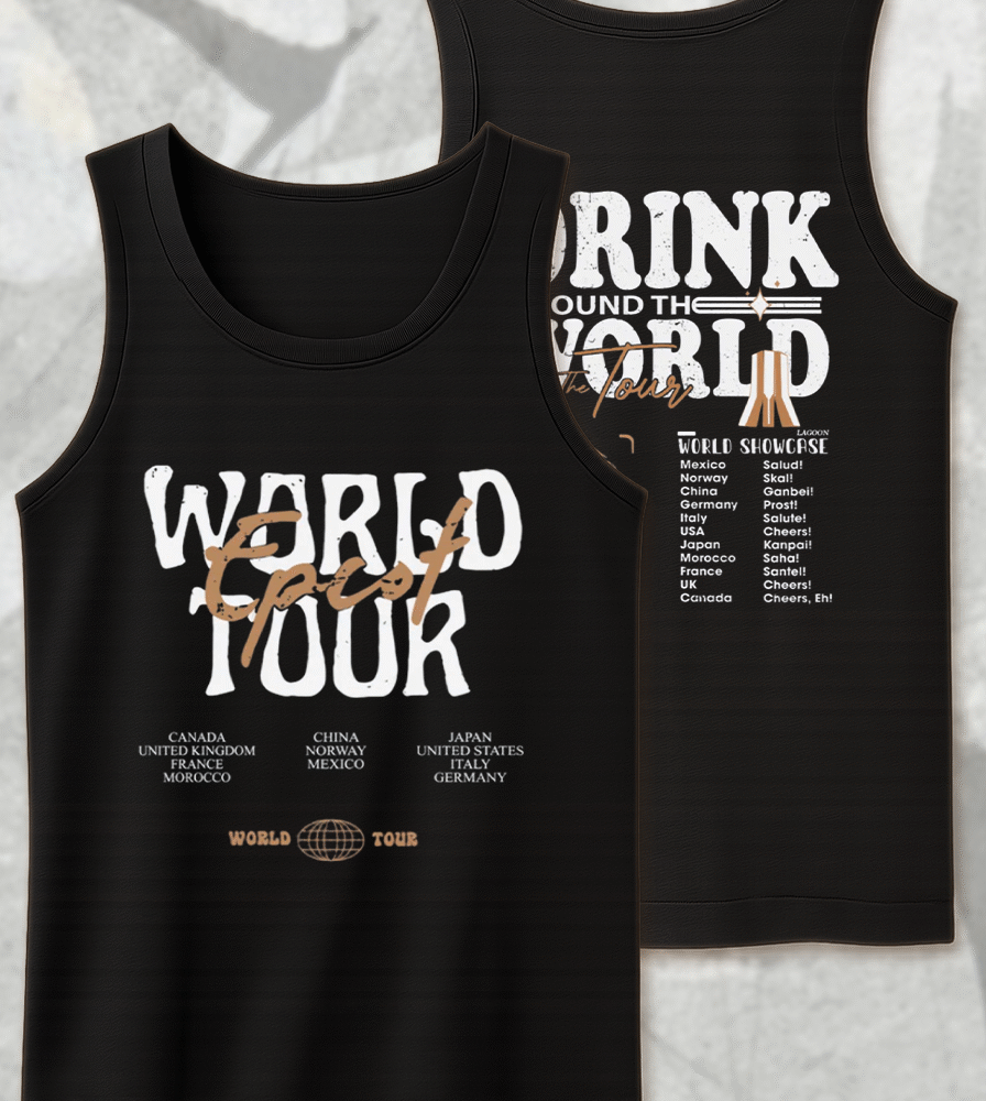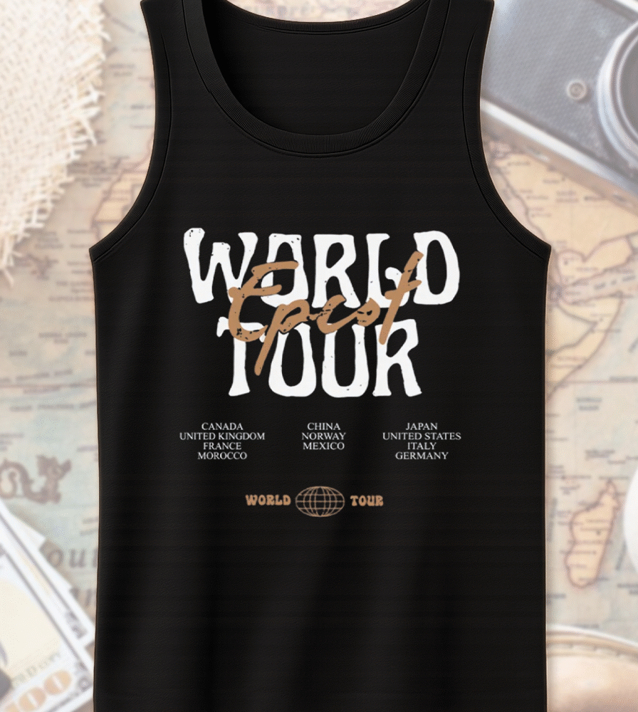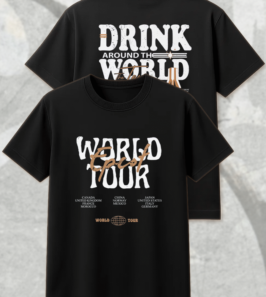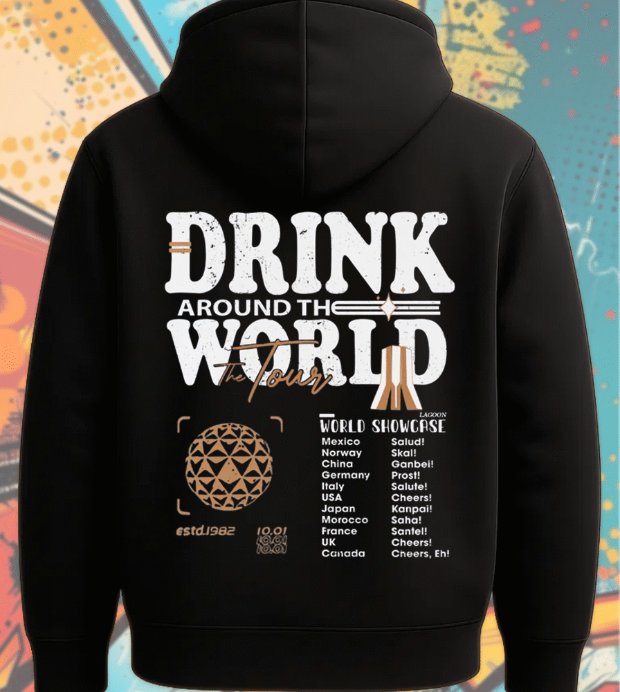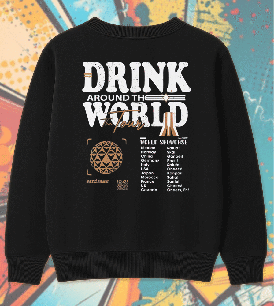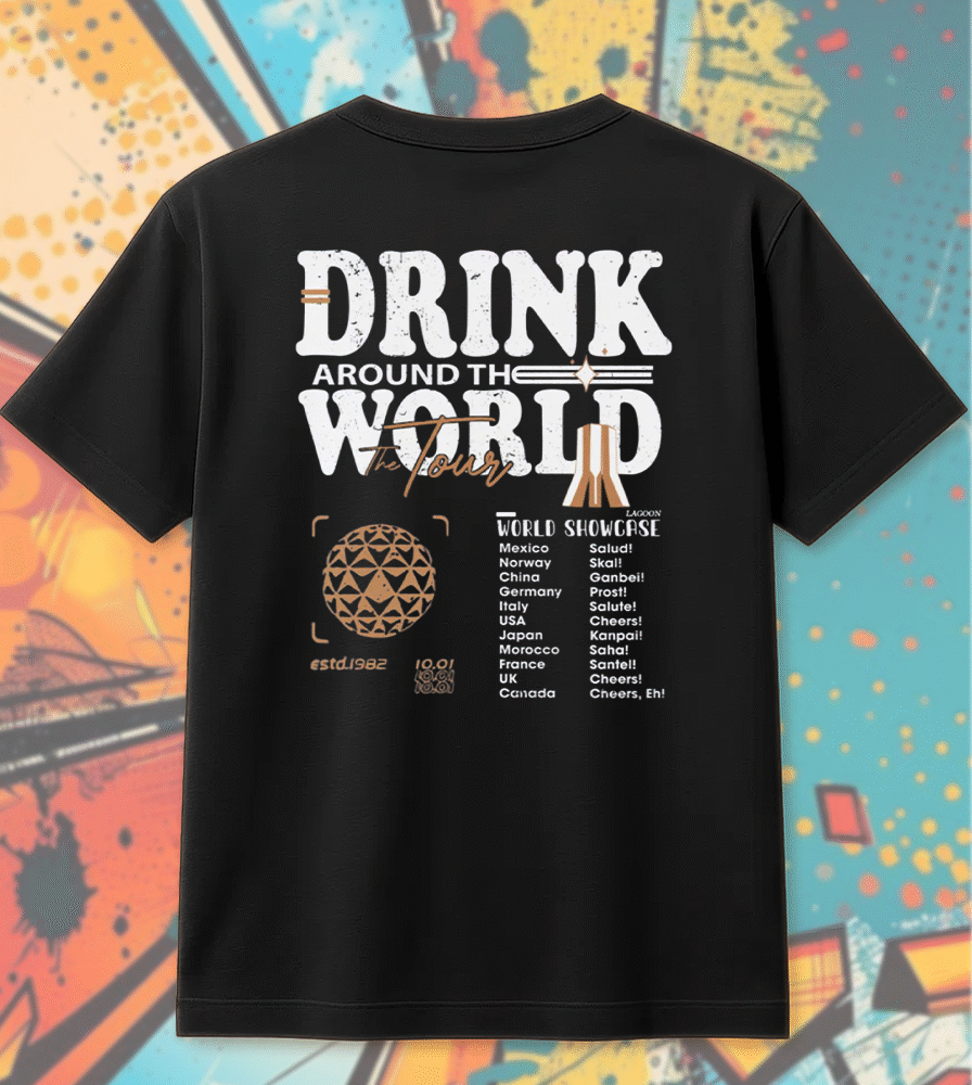 Embark on a world tour like no other with this Vintage Disney Epcot World Tour collection, featuring the popular Drink Around the World design. Whether you’re sipping around the World Showcase at Epcot, planning a Disneyworld trip, or just celebrating your love for Disney, this collection is the perfect way to wear the magic.
