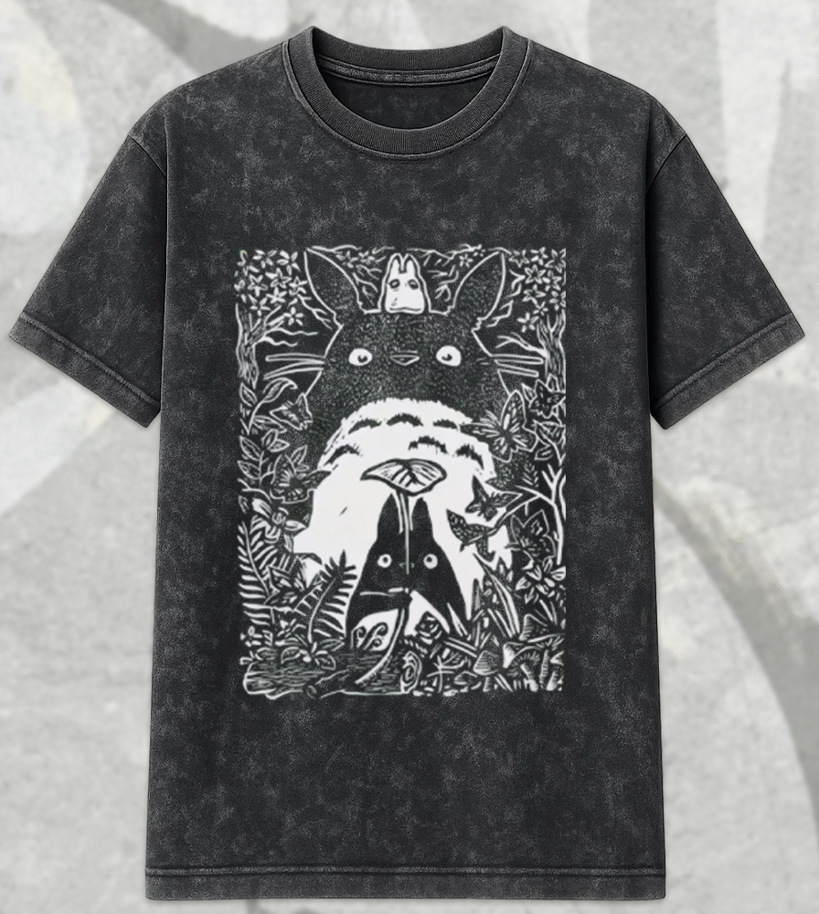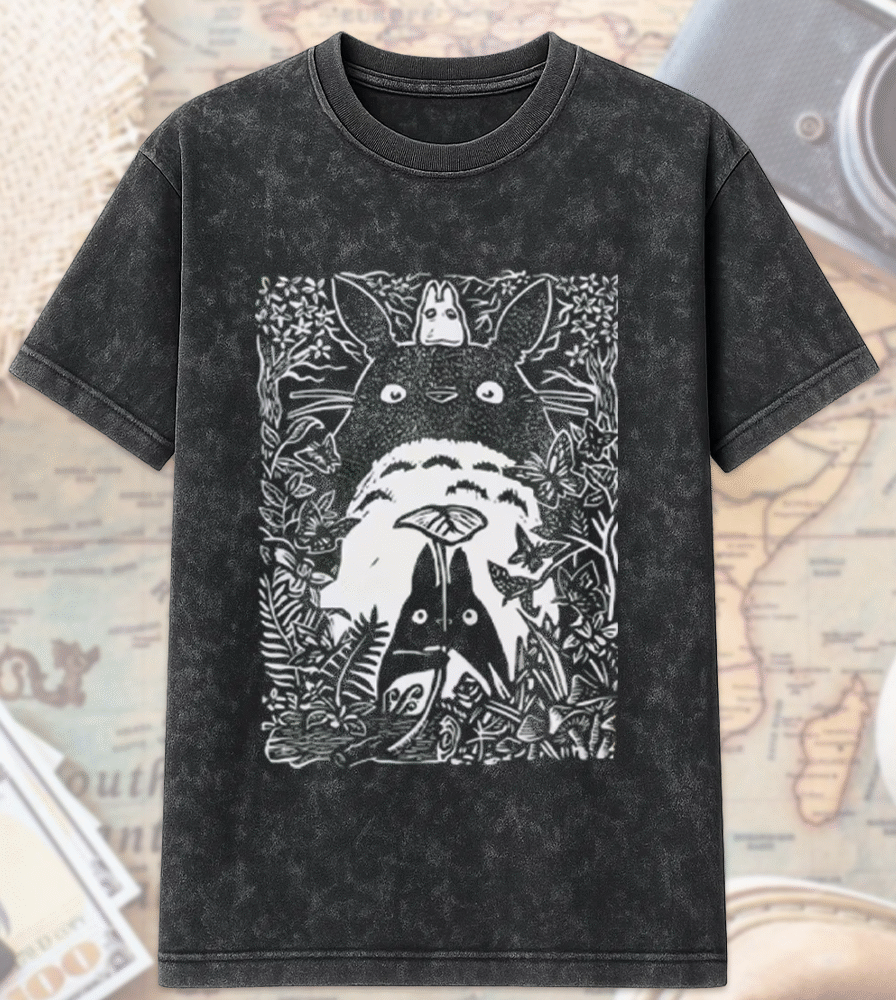 Step into the whimsical world of My Neighbor Totoro with this vintage acid wash T-shirt and hoodie collection. Featuring the iconic Catbus design, this collection is the perfect tribute to Studio Ghibli and Hayao Miyazaki. Whether you’re a die-hard anime lover, a Studio Ghibli fan, or searching for a unique birthday gift for a loved one, this design brings the magic of Totoro to life in a retro, distressed style.