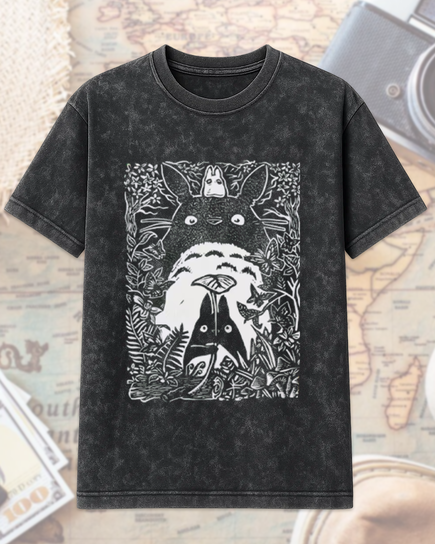 Step into the whimsical world of My Neighbor Totoro with this vintage acid wash T-shirt and hoodie collection. Featuring the iconic Catbus design, this collection is the perfect tribute to Studio Ghibli and Hayao Miyazaki. Whether you’re a die-hard anime lover, a Studio Ghibli fan, or searching for a unique birthday gift for a loved one, this design brings the magic of Totoro to life in a retro, distressed style.