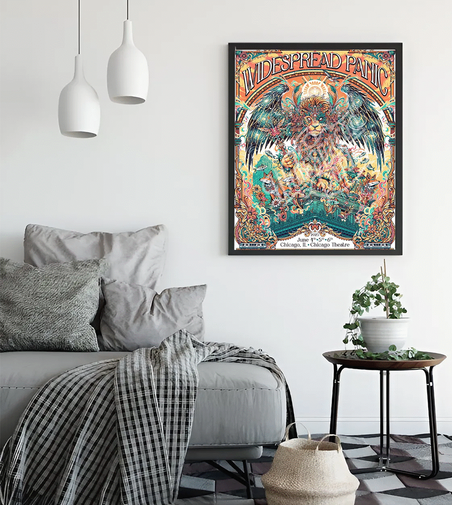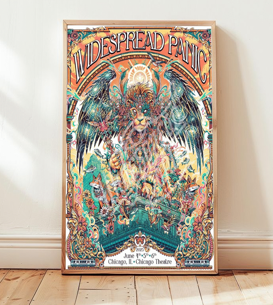 Commemorate Widespread Panic’s legendary three-night run at the historic Chicago Theatre with this exclusive poster or canvas print. Featuring the stunning artwork of Juan Ma Orozco, this limited-edition tour piece captures the band’s improvisational spirit and connection with their Chicago fanbase from June 4–6, 2025.