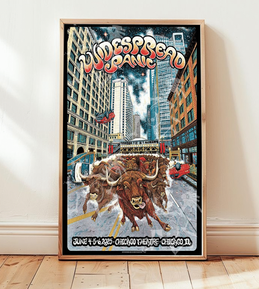 Celebrate Widespread Panic’s 3-night residency at the iconic Chicago Theatre with this limited-edition poster/canvas, designed by acclaimed artist Nathaniel Deas. Held on June 4th, 5th, and 6th, 2025, this commemorative wall art captures the energy, soul, and psychedelia of the band’s legendary performances.