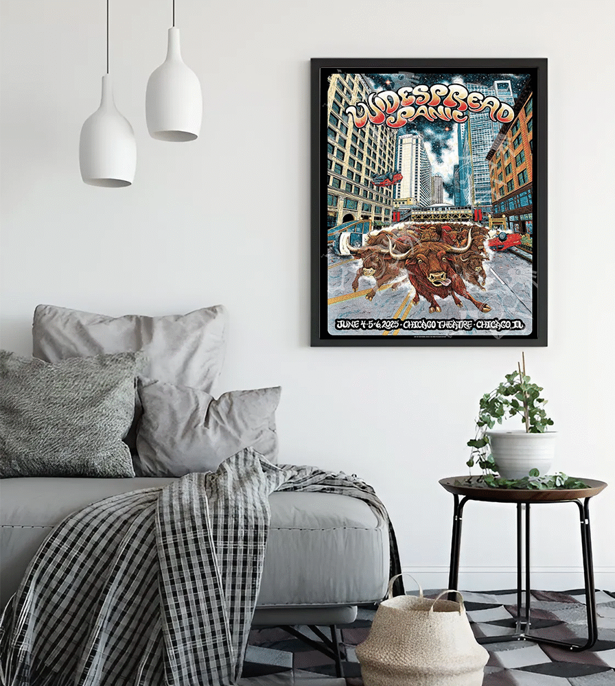 Featuring a colorful, surreal composition true to Deas’ signature style, the poster highlights the spirit of Chicago and the communal joy of WSP’s extended jam sessions. Whether you were at the show or are a lifelong Panic fan, this piece brings the magic home.