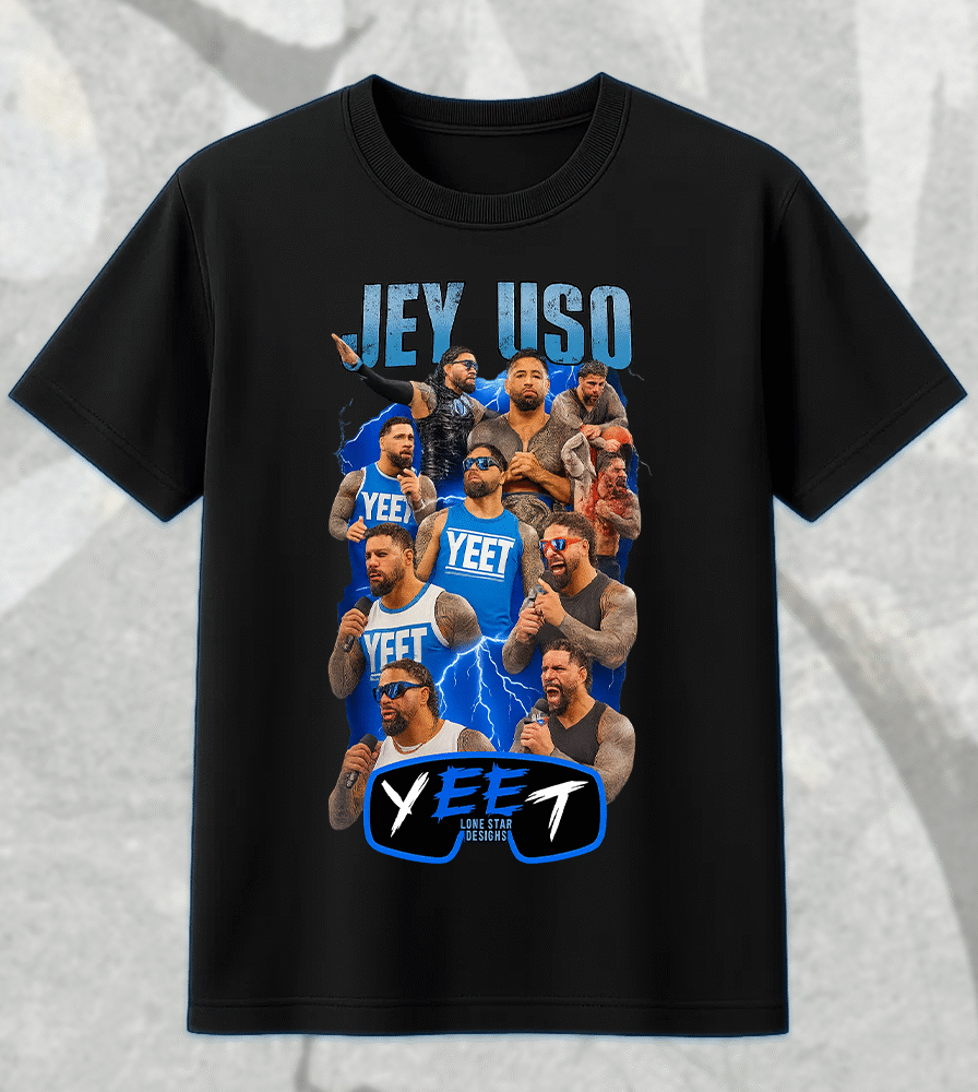 This collage digital design brings the high-energy atmosphere of WrestleMania to life with dynamic and detailed graphics of Jey Uso in action. Created for sublimation, DTF, and screen printing, this design ensures vibrant colors and a sharp, professional finish. Whether you’re a longtime WWE fan or just love the Uso family, this shirt lets you show your pride for one of the top performers in WWE.